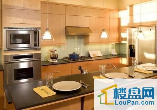 2、狭小的厨房空间可以运用良好的光照条件来防止拥挤和压抑的感觉,同时避免颜色的过于花哨,素雅简洁的色彩重要,淡淡的米黄搭配柔和的灯光,烹饪料理时还能穷尽外面一番景色!由于厨房的空间不大,所以色彩较淡的厨具较受欢迎,如绿色、浅灰色。在厨具表面的材质方面以耐火板为主流。改良后的耐火板不仅光彩夺目,其耐热、耐用性能更有显著提高,一改以往质弱印象。成套厨具在储物功能设计上亦愈显精心、精密,一扫以往零乱、难寻的窘境。在厨房整体化的观念下,应当注意的是,并非的家电用品都可嵌人橱内,应考虑到家电用品和橱柜在材质和散热性上的,否则会影响家电使用中的安全性,危害自身的安全。